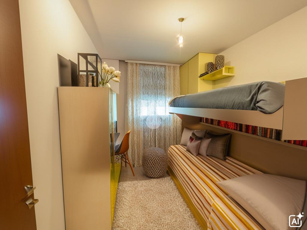 Nel reparto notte, 2 camere, di cui una matrimoniale, con accesso al poggiolo, ed una singola, e due bagni, uno cieco con doccia ed uno finestrato con vasca.