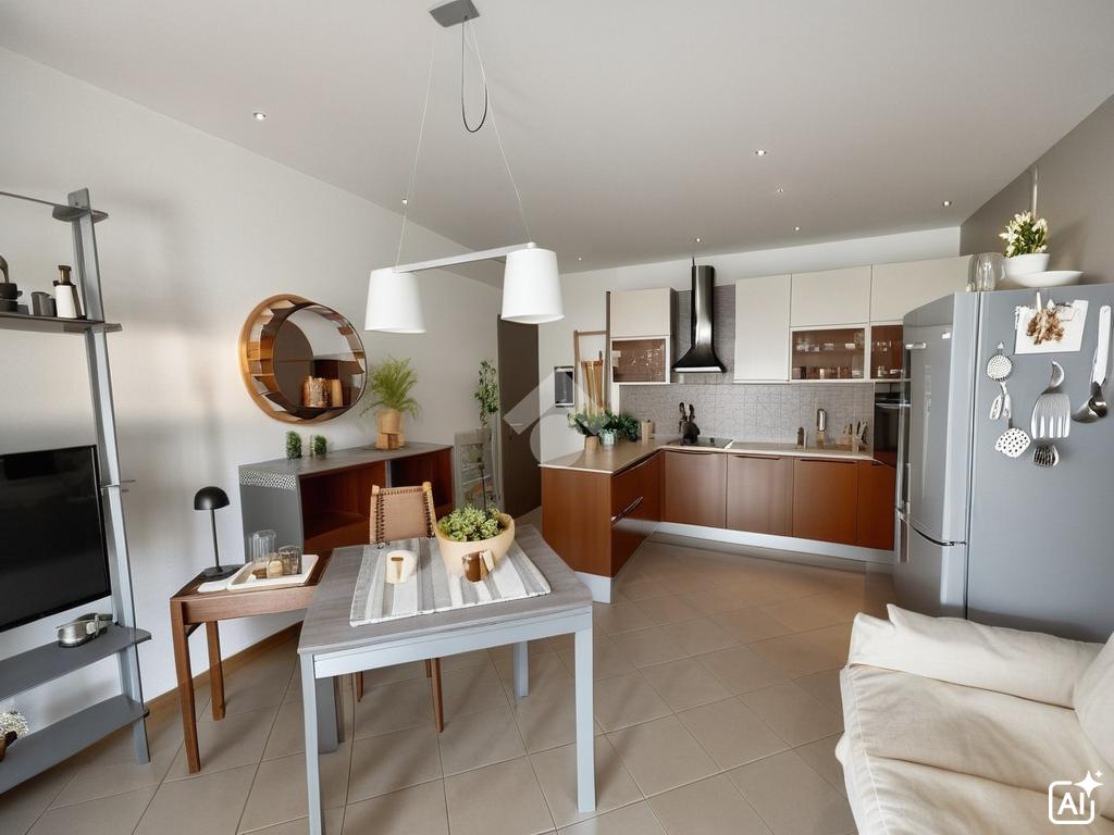 Al piano rialzato, troviamo ingresso nel luminoso soggiorno - cottura open space da cui si può accedere direttamente al terrazzo.